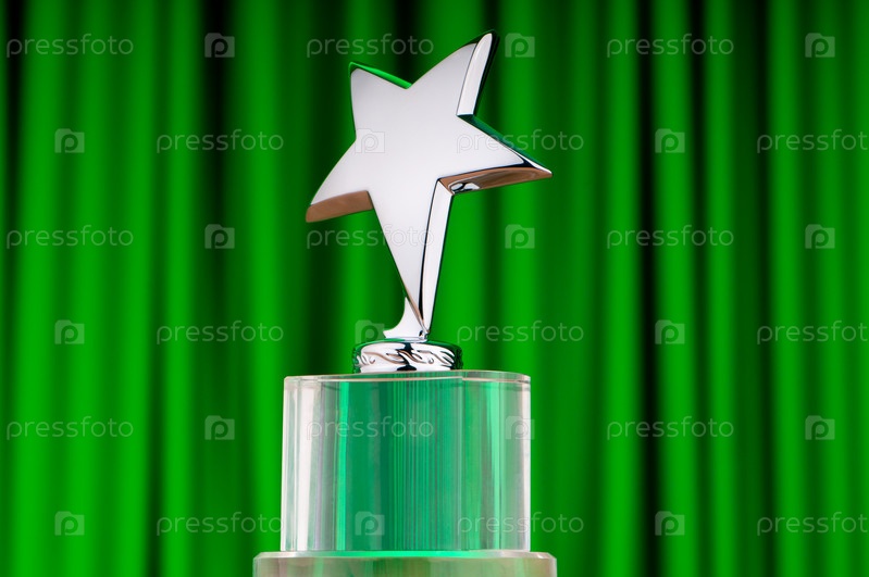 Приз в форме звезды на фоне зеленого занавеса