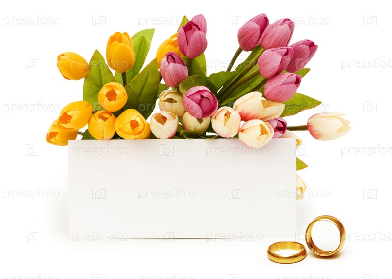 Тюльпаны, бланк для приглашений и обручальные кольца