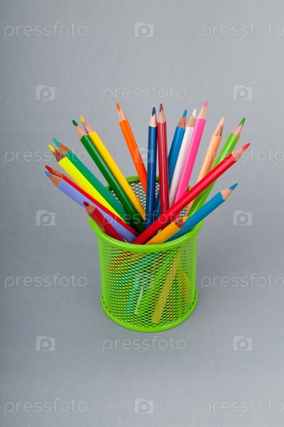 Цветные карандаши на сером фоне