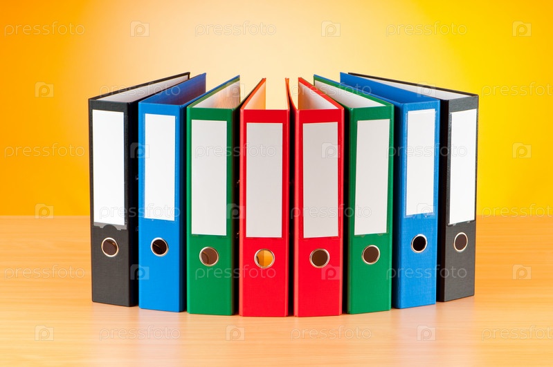 Разноцветные канцелярские папки на желтом градиентном фоне