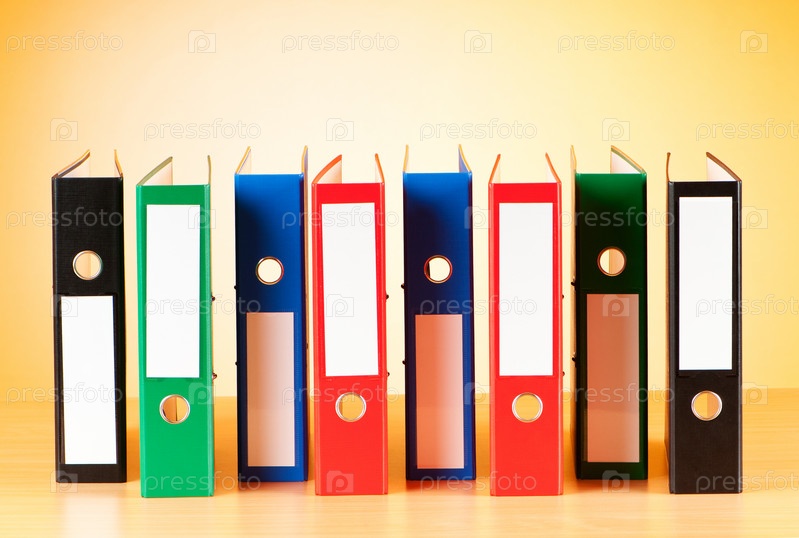 Разноцветные канцелярские папки на желтом градиентном фоне