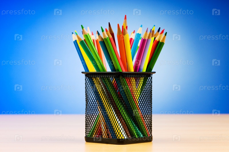 Цветные карандаши на голубом фоне
