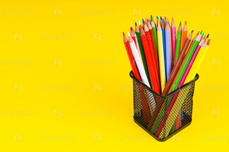 Цветные карандаши на желтом фоне