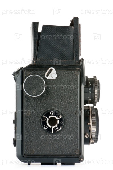 Старый пленочный фотоаппарат на белом фоне