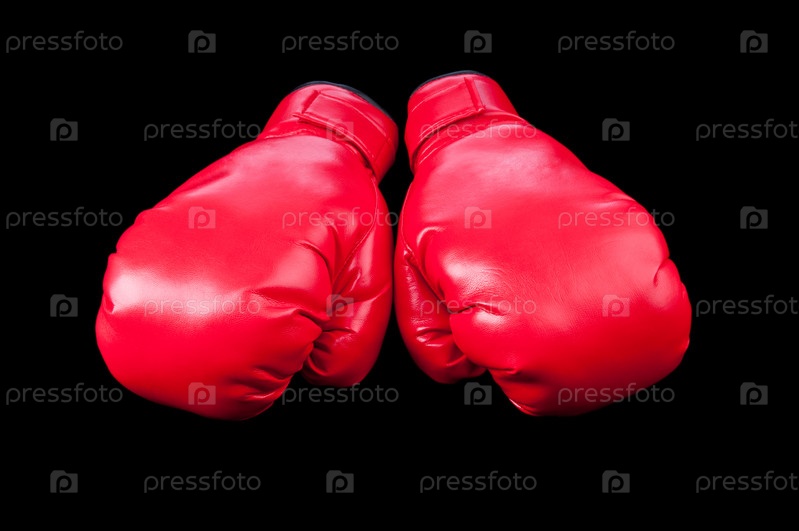 Красные боксерские перчатки на черном фоне