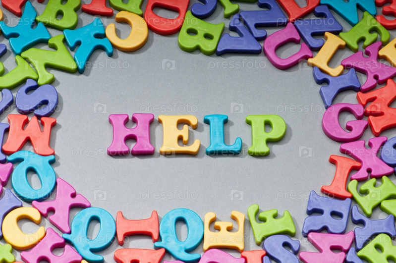 Разноцветная надпись ПОМОЩЬ на сером фоне