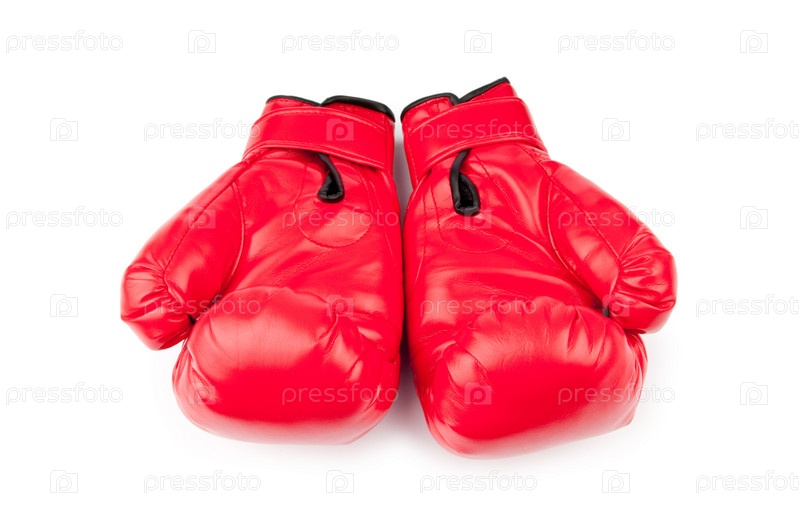 Красные боксерские перчатки на белом фоне