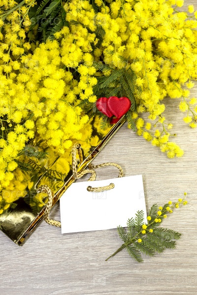Мимоза и сердечки на открытке