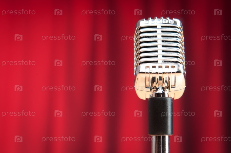 Микрофон на фоне занавеса