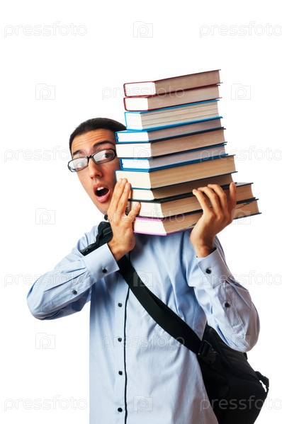 Студент с большой стопкой книг