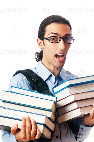 Студент со стопками книг