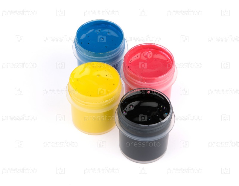 CMYK - Коробка с краской, изолированной на белом
