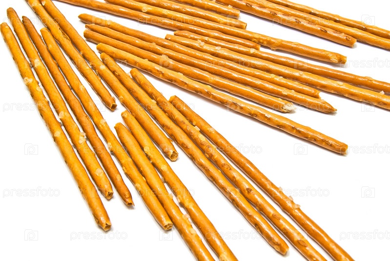 Соленые хлебные палочки на белом фоне