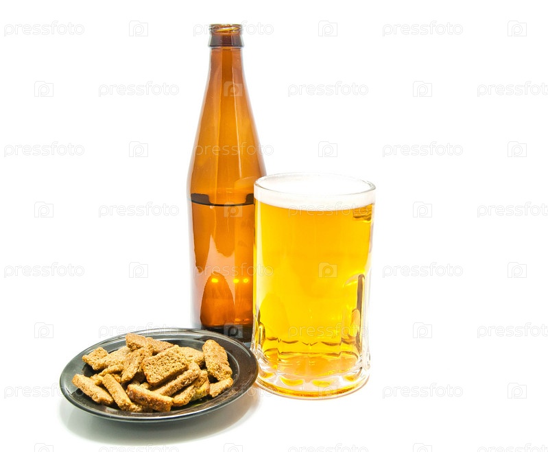 Светлое пиво и различные закуски