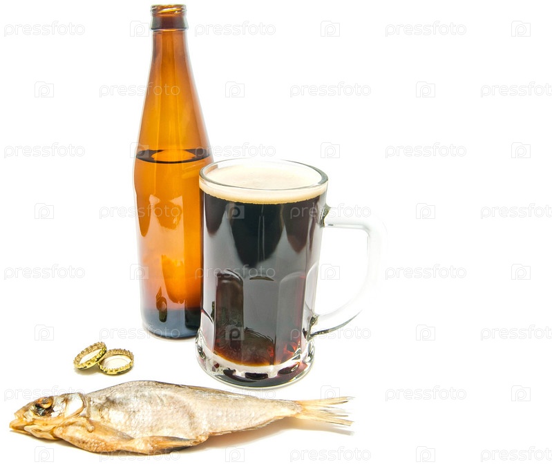Пиво и закуски на белом фоне