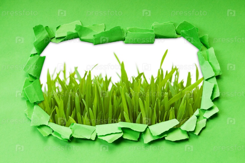 Зеленая трава через отверстие в бумаге