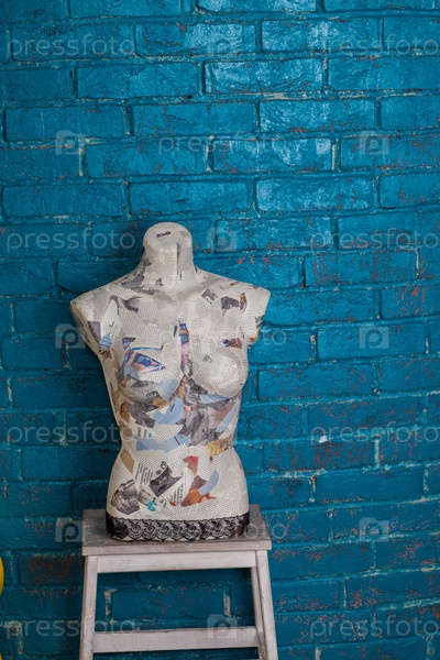 Манекен на фоне синей стены