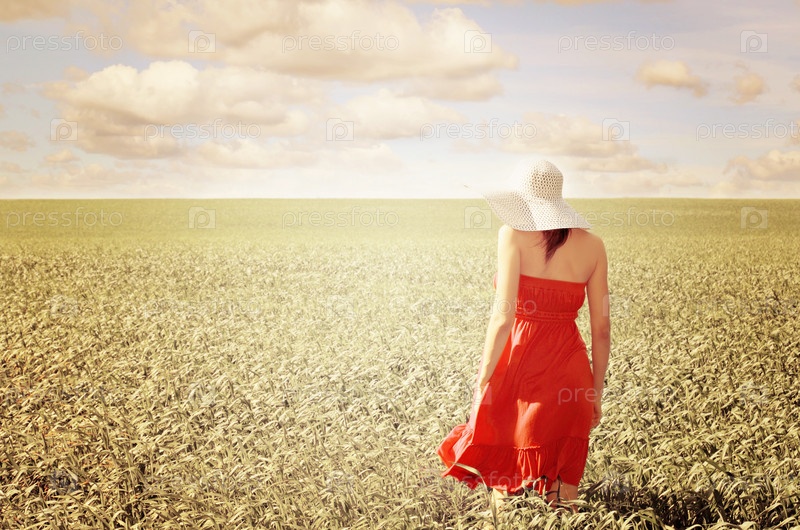 Женщина в шляпе на весеннем поле