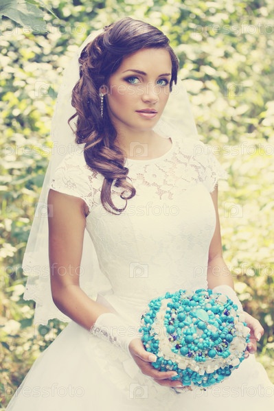 Красивая невеста с букетом из бирюзы
