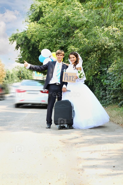 Жених и невеста путешествуют автостопом в Париж