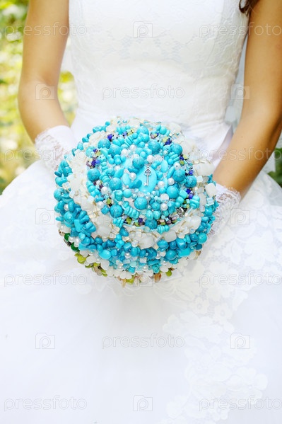 Красивая невеста с букетом из бирюзы