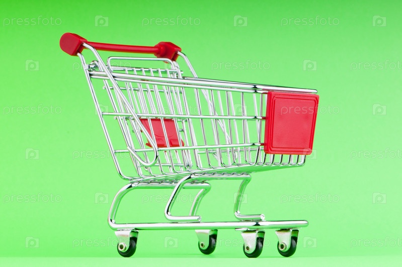 Покупательская тележка на зеленом фоне