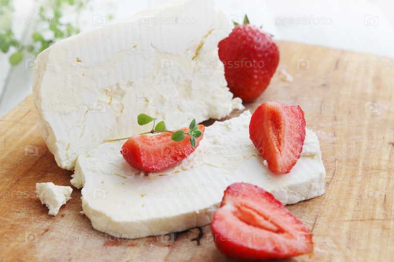 Домашний жирный творог на деревянной доске