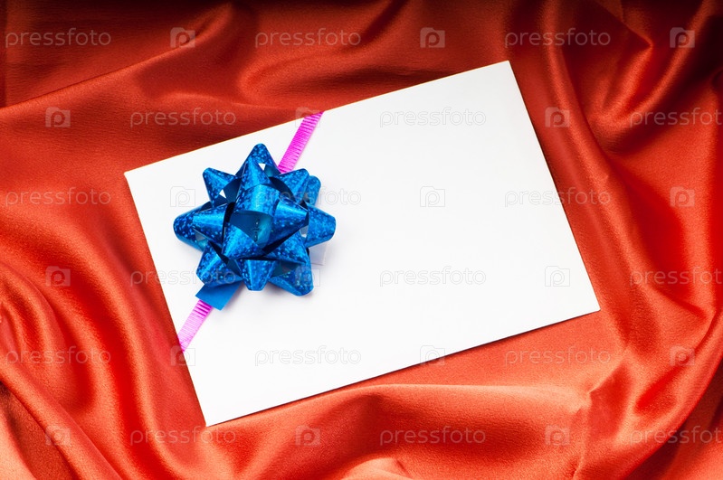 Карточка с бантом на шелковой ткани