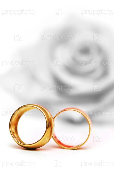 Обручальные кольца на фоне розы