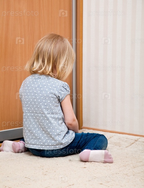 Грустная девочка сидит на полу
