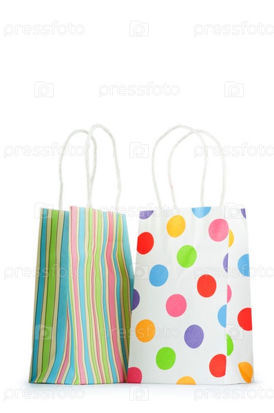Цветные пакеты для покупок на белом фоне