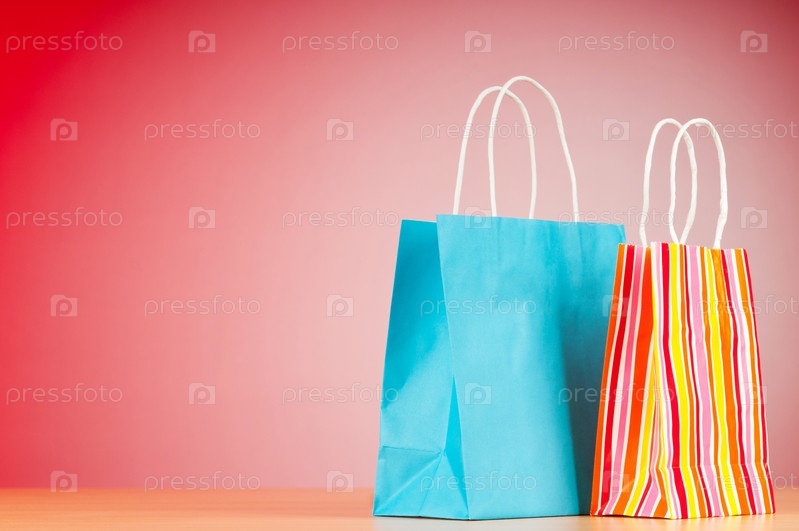 Бумажные пакеты для покупок на красном фоне
