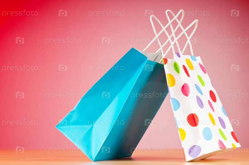 Бумажные пакеты для покупок на красном фоне