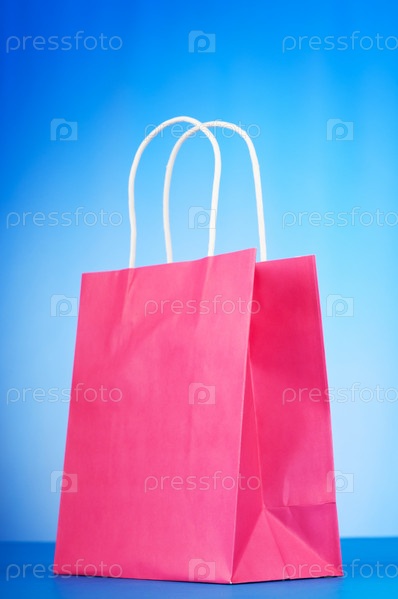 Бумажный пакет с ручками на голубом фоне