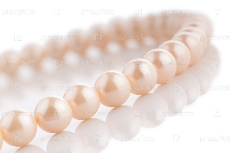 Нитка жемчуга на белом фоне