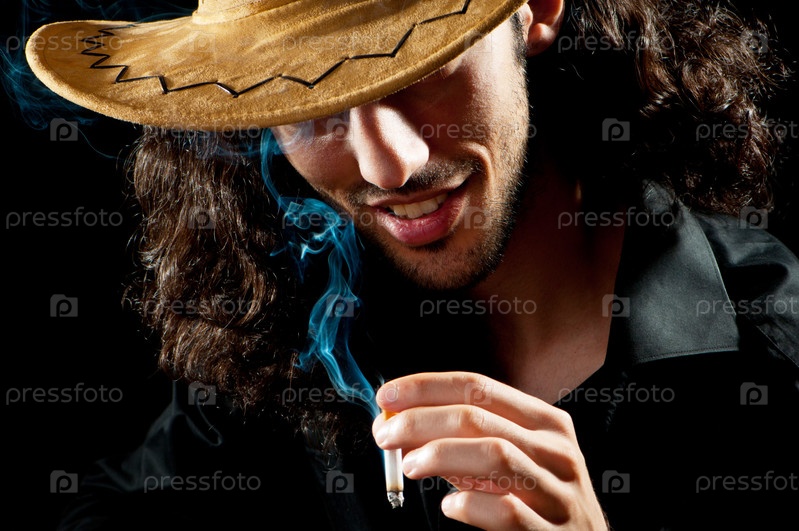 Мужчина в ковбойской шляпе курит сигарету