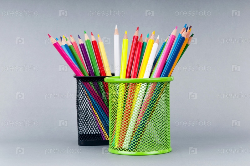Цветные карандаши в стаканах