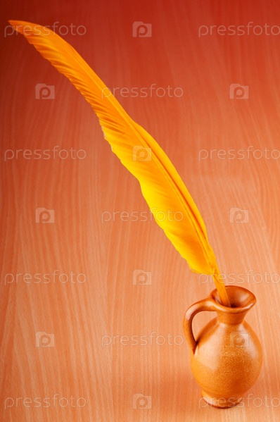 Чернильница и перо на столе