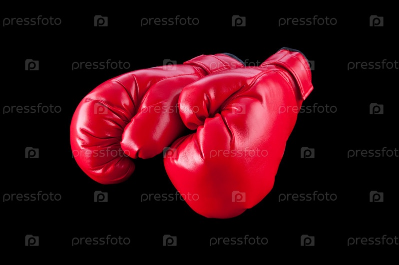 Красные боксерские перчатки на черном фоне