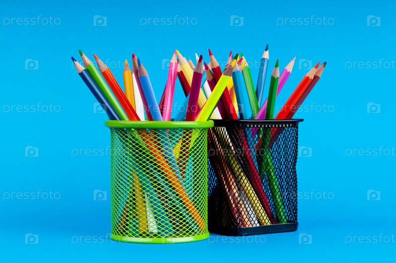 Цветные карандаши на синем фоне