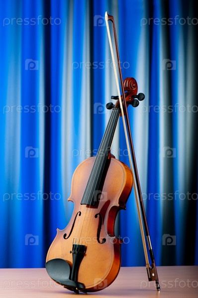 Скрипка на фоне занавеса