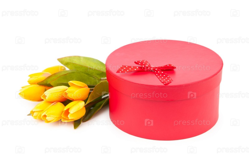 Подарочная коробка и тюльпаны