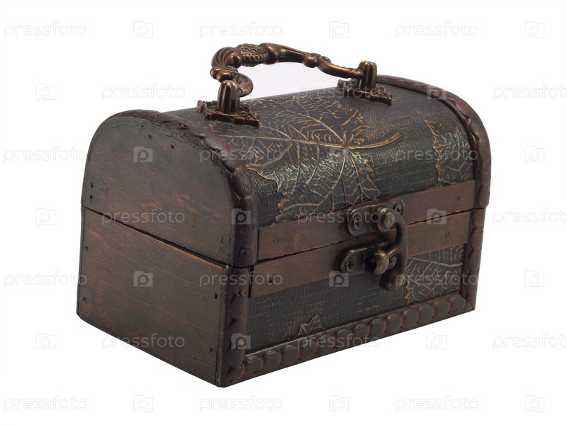 Антикварный небольшой деревянный сундук на белом фоне