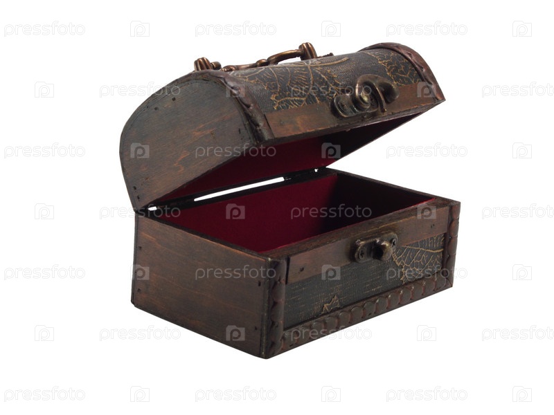 Пустой деревянный антикварный сундук на белом фоне