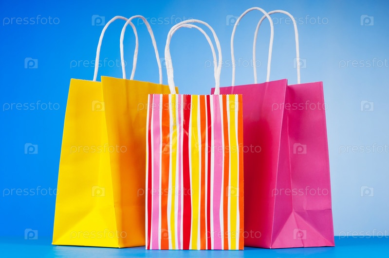 Красочные бумажные пакеты на синем фоне