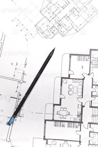 Планы жилых квартир и карандаш крупным планом