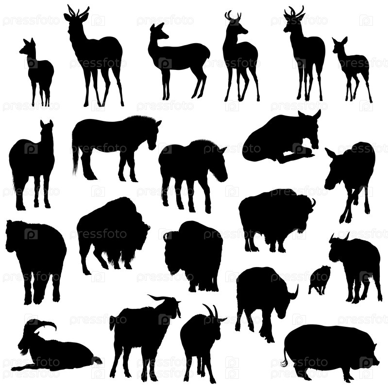 Силуэты животных на белом фоне