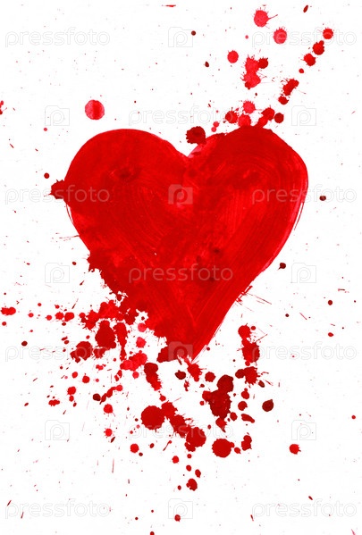 Абстрактная живопись сердца, покрытого пятнами на белом фоне