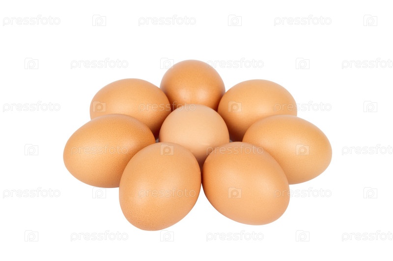 Группа коричневых яиц, изолированных на белом фоне