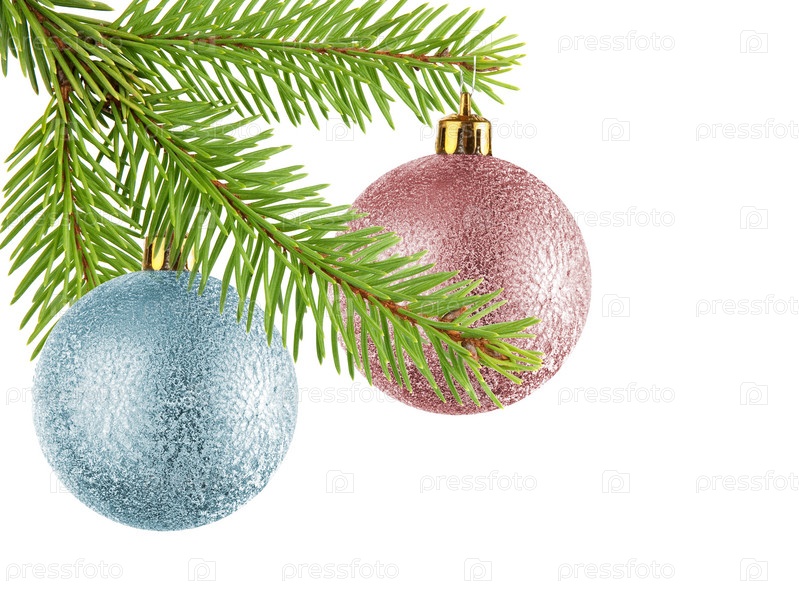 Ветка рождественской елки на белом фоне